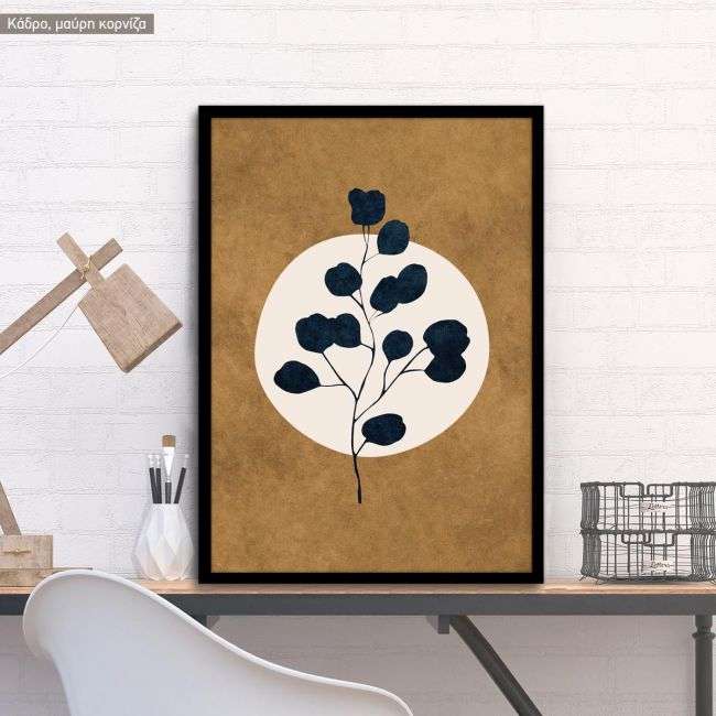 Dark blue leaves on brown III, αφίσα, κάδρο