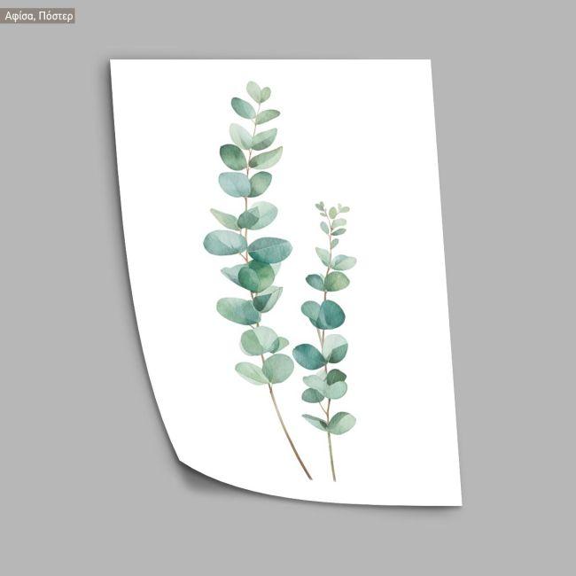 Green leaves in watercolor, αφίσα, κάδρο