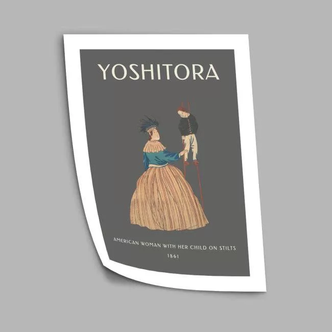 American woman with child on stilts, Yoshitora, αφίσα, κάδρο