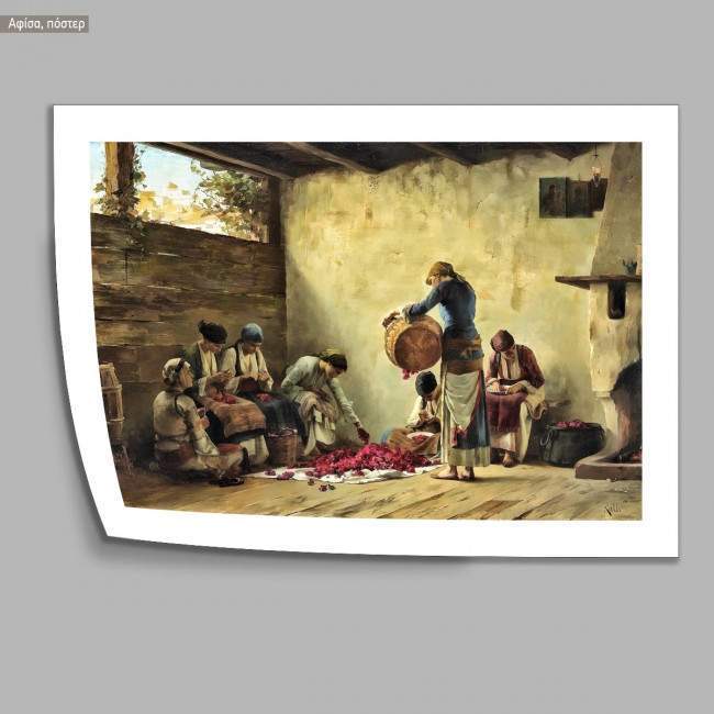 Γυναίκες ετοιμάζουν γλυκό τριαντάφυλλο στα Μέγαρα, Ράλλης, αφίσα, κάδρο