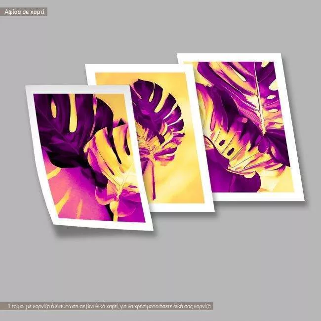 Monstera in magenta and yellow, αφίσα, κάδρο τρίπτυχο