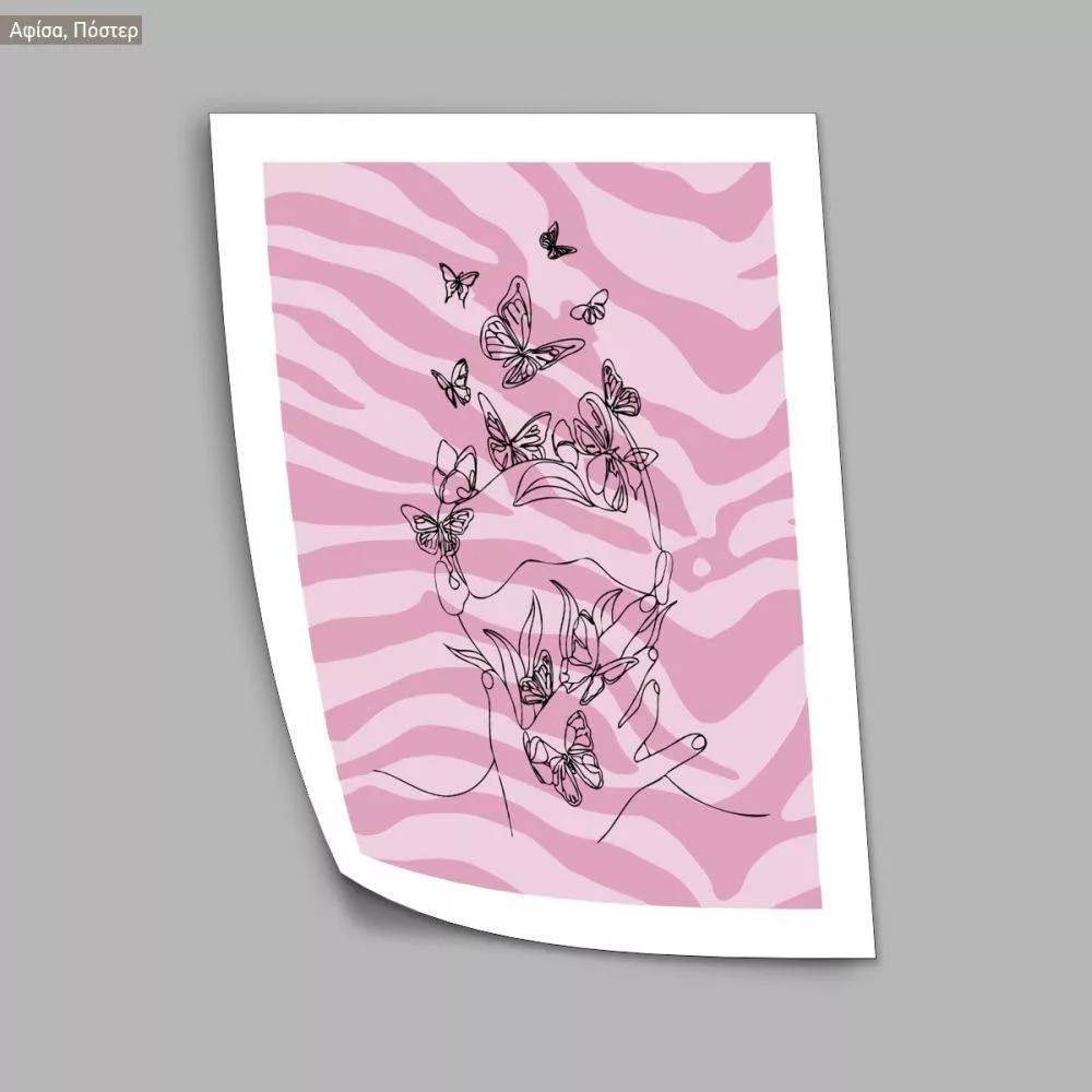 Butterflies on pink tiger print, αφίσα, κάδρο