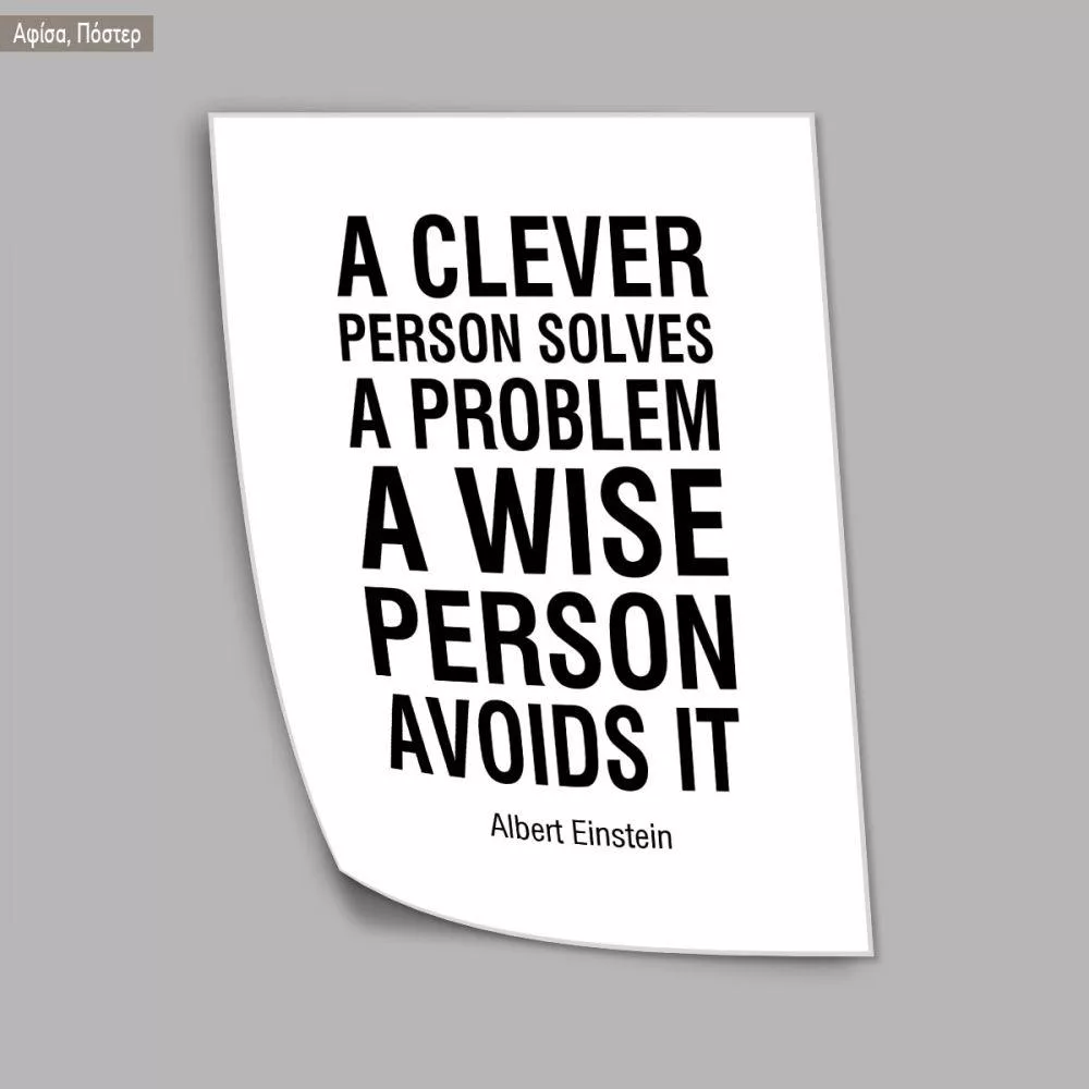A clever person solves a problem. A wise person avoids it Einstein, αφίσα, κάδρο