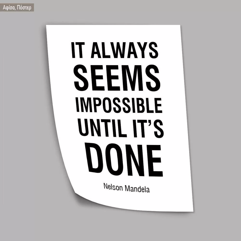 It always seems impossible until it’s done Nelson Mandela, αφίσα, κάδρο
