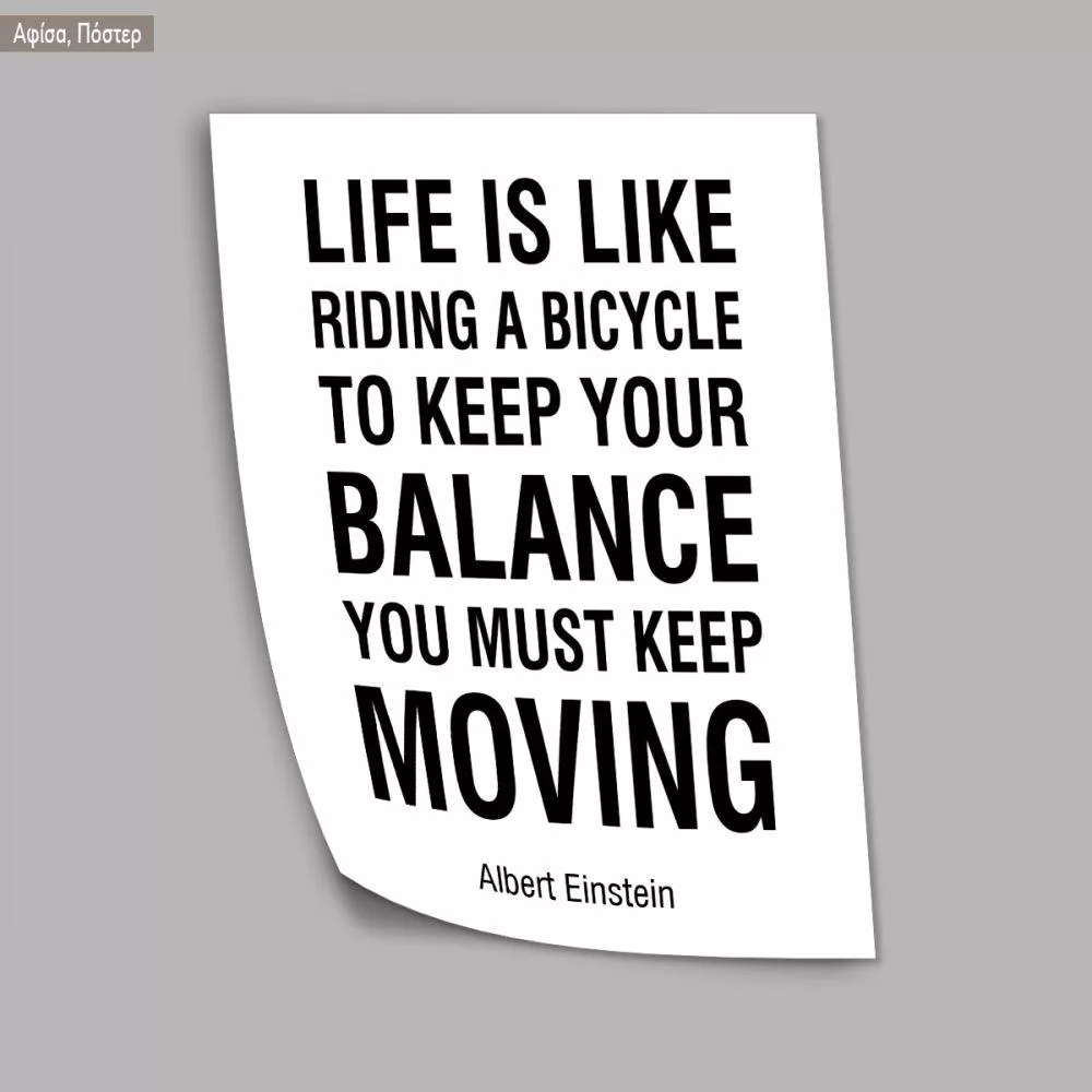 Life is like riding a bicycle. To keep your balance you must keep moving, Einstein, αφίσα, κάδρο