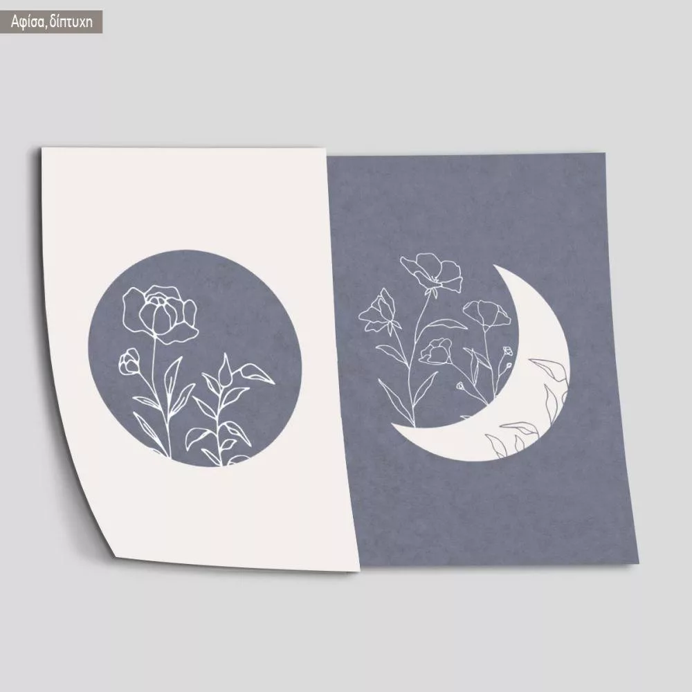 Sun and moon gray blue, αφίσα, κάδρο, δίπτυχο