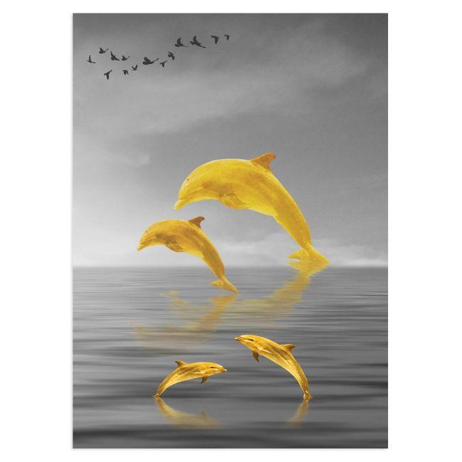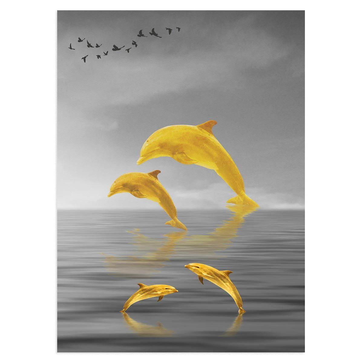 Dolphins, gold on gray I, αφίσα, κάδρο