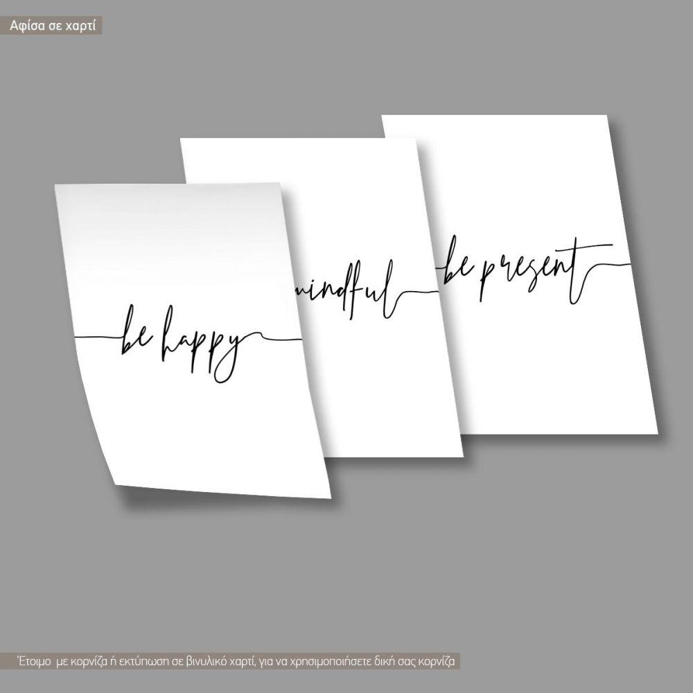 Be happy Be mindful Be present, αφίσα, κάδρο