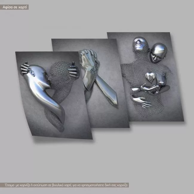 Love 3d grayscale, αφίσα, κάδρο, τρίπτυχο