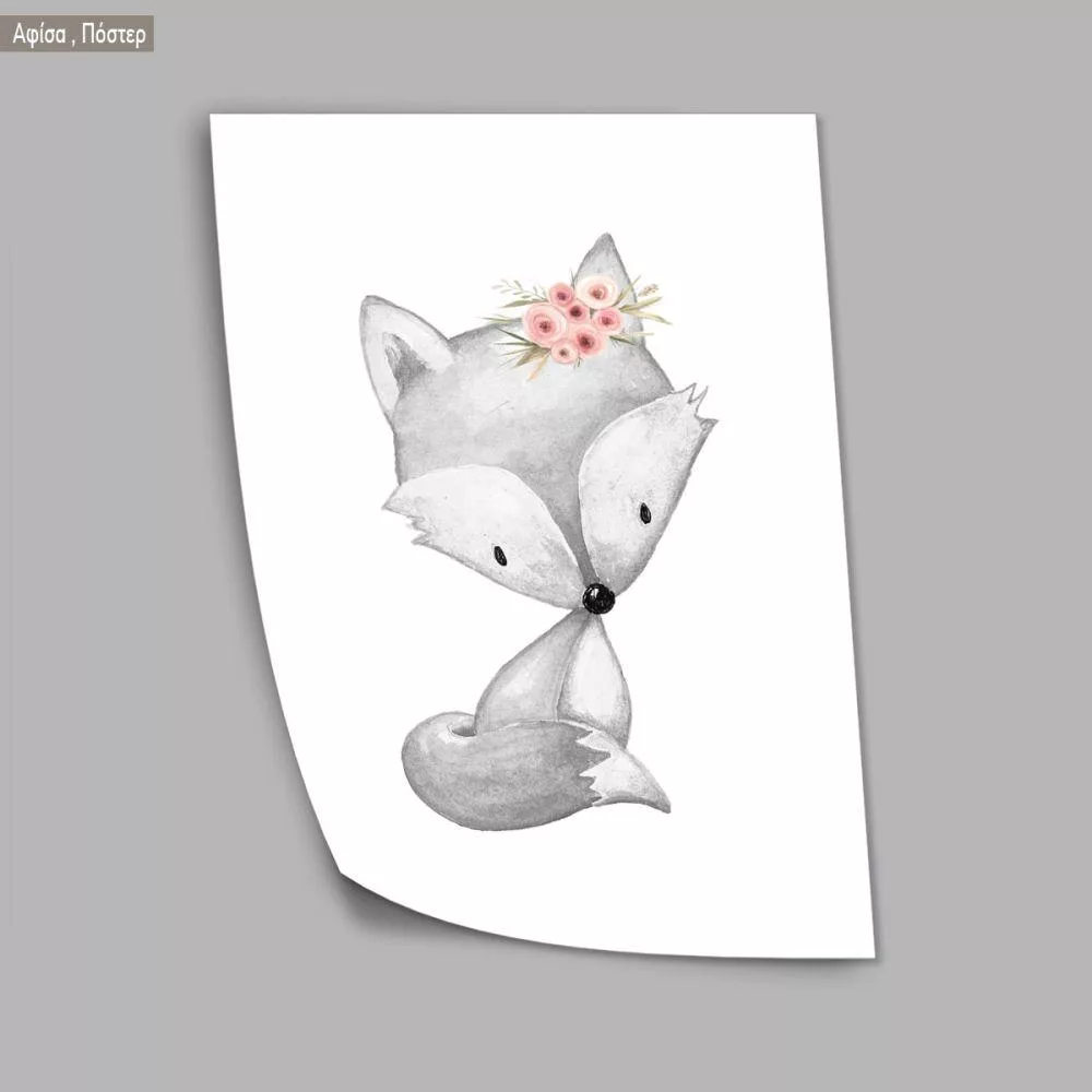 Αλεπουδάκι gray pink watercolor, αφίσα, κάδρο