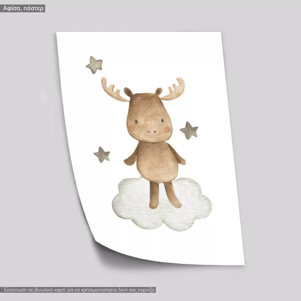 Baby moose watercolor, αφίσα, κάδρο