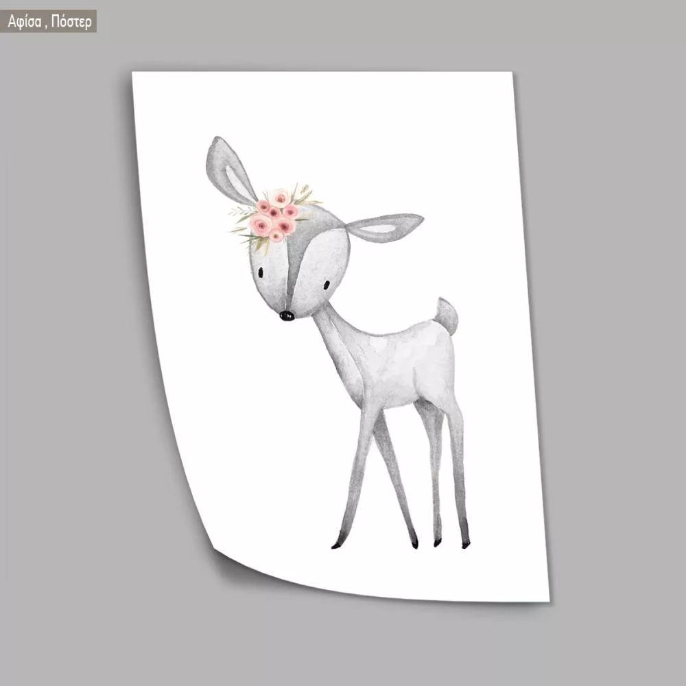 Ελαφάκι gray pink watercolor, αφίσα, κάδρο