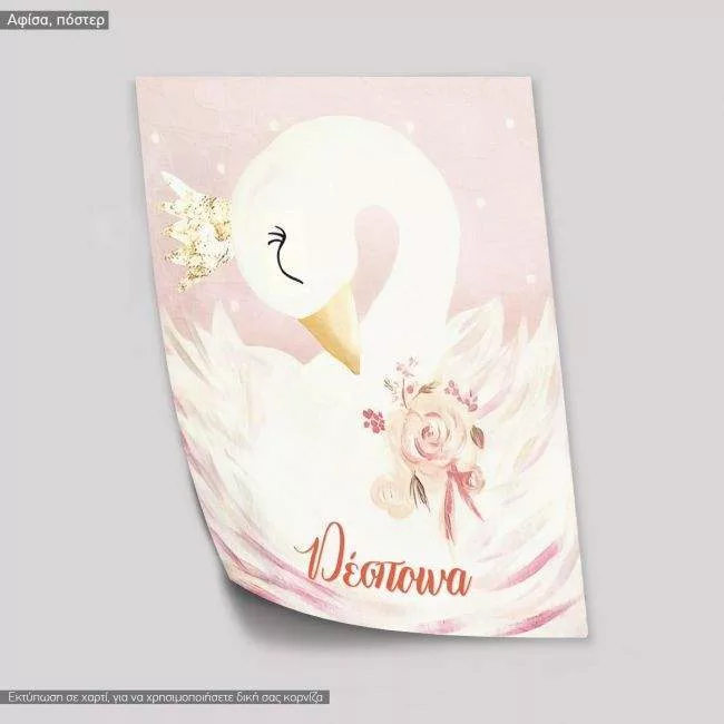 Κύκνος με λουλούδια ζωγραφιστός, αφίσα, κάδρο