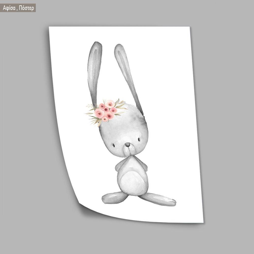 Λαγουδάκι gray pink watercolor, αφίσα, κάδρο