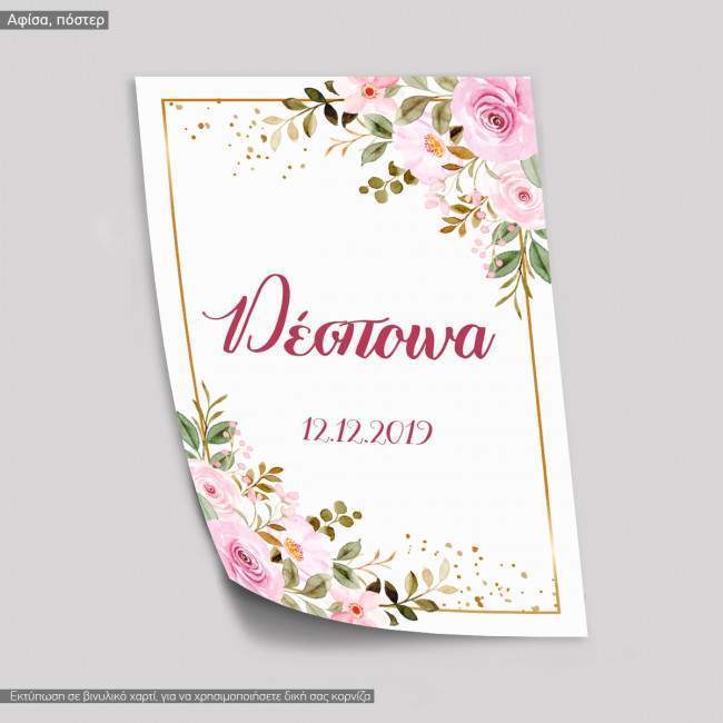 Χρυσό πλαίσιο με λουλούδια, προσωποποιημένη αφίσα, κάδρο