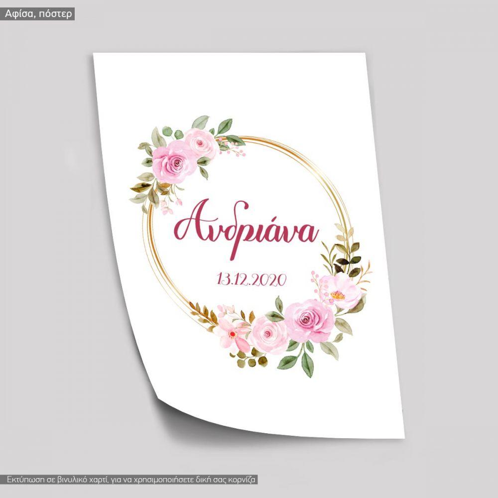 Χρυσοί κύκλοι με λουλούδια, προσωποποιημένη αφίσα, κάδρο