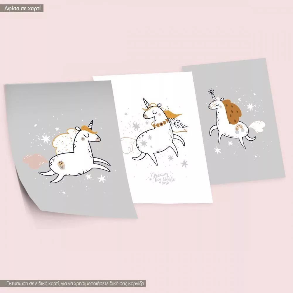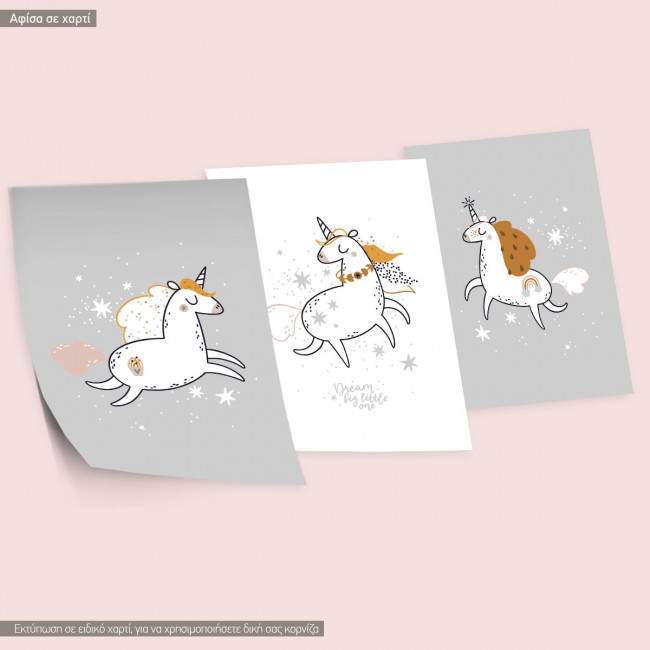 Unicorns με ευχές, αφίσα, κάδρο, τρίπτυχο