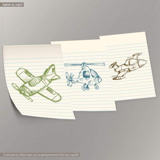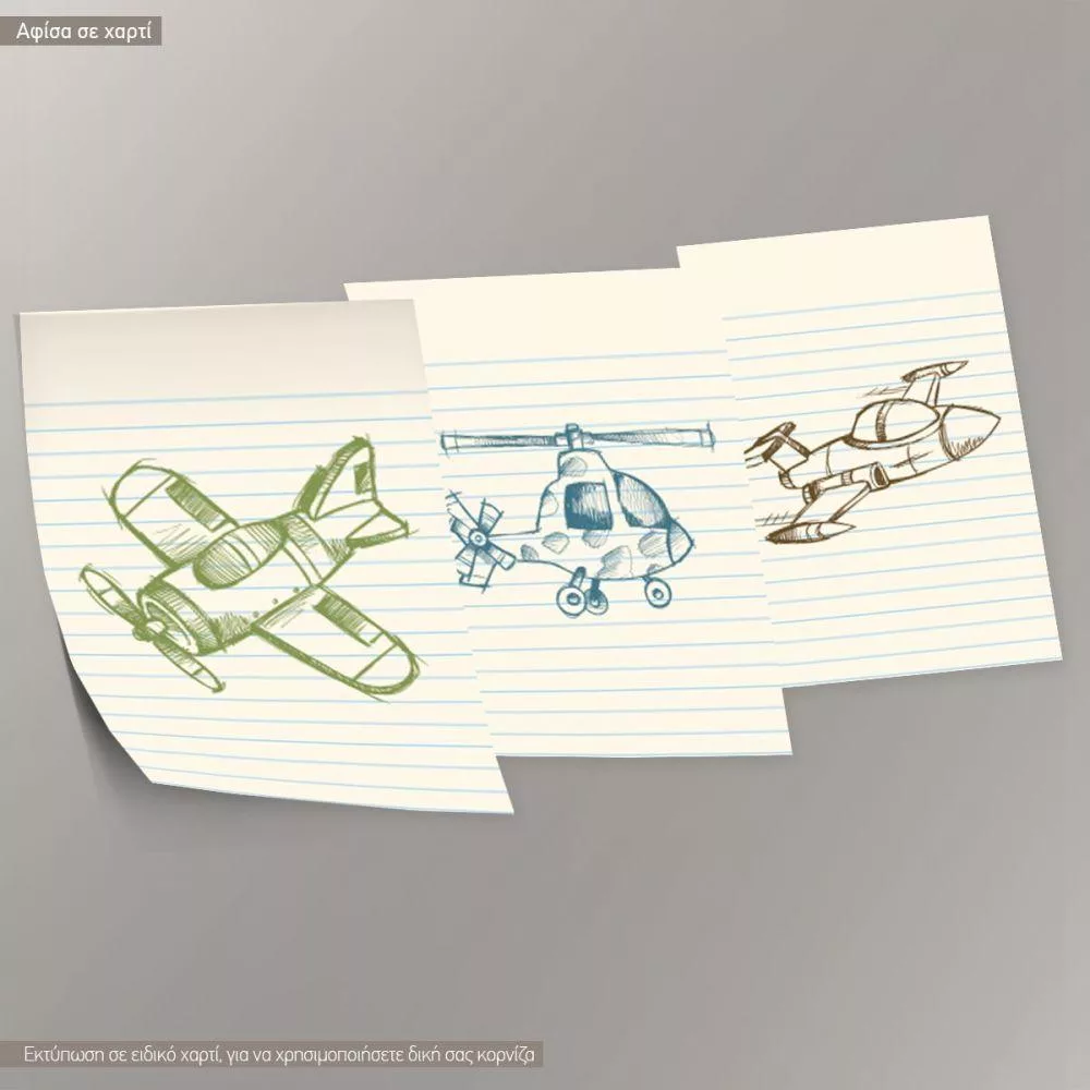 Ώρα για πτήσεις, σκίτσα, αφίσα, κάδρο, τρίπτυχο
