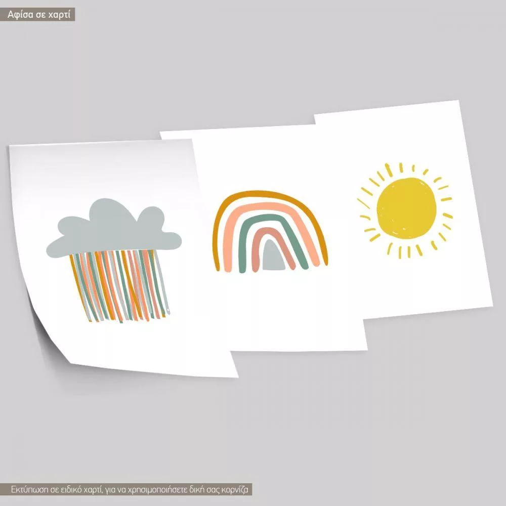 Ουράνιο τόξο Ήλιος Σύννεφα Boho, αφίσα, κάδρο