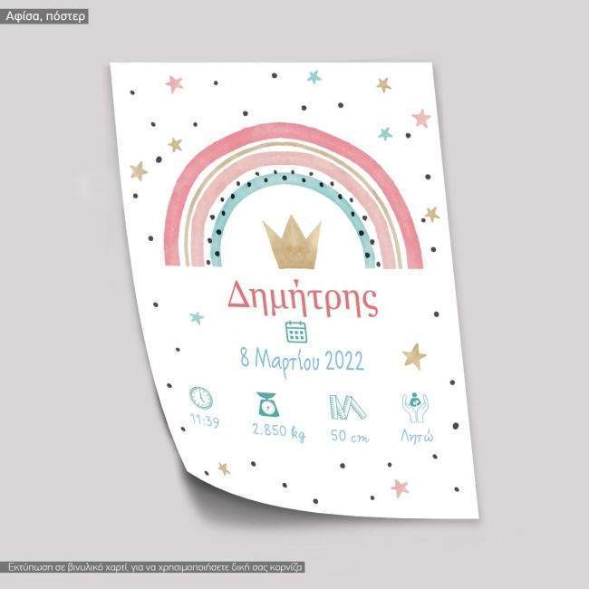 Ουράνιο τόξο και αστέρια με στοιχεία γέννησης, αφίσα, κάδρο