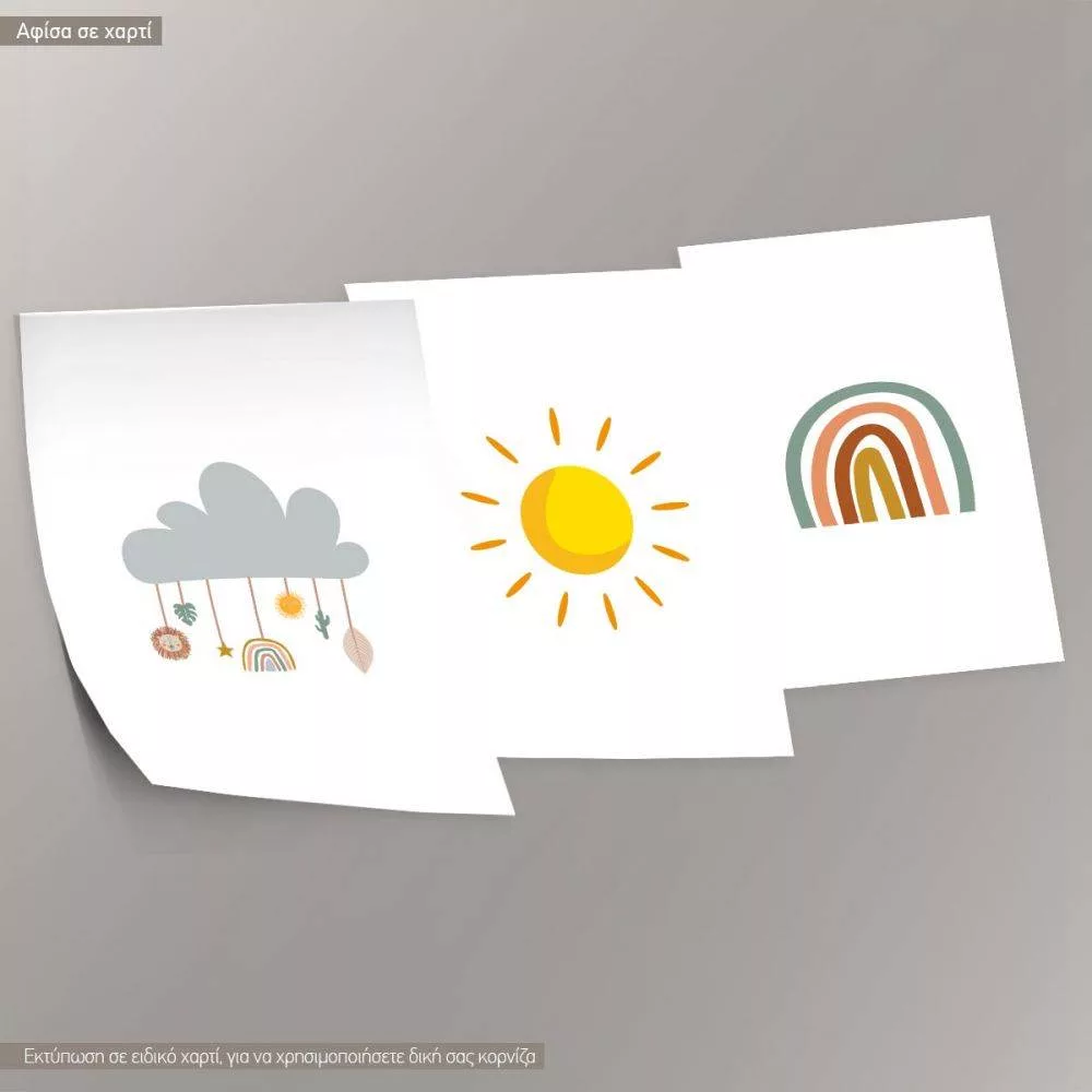 Παιχνιδιάρικο σύννεφο, Ήλιος, Ουράνιο τόξο Boho, αφίσα, κάδρο