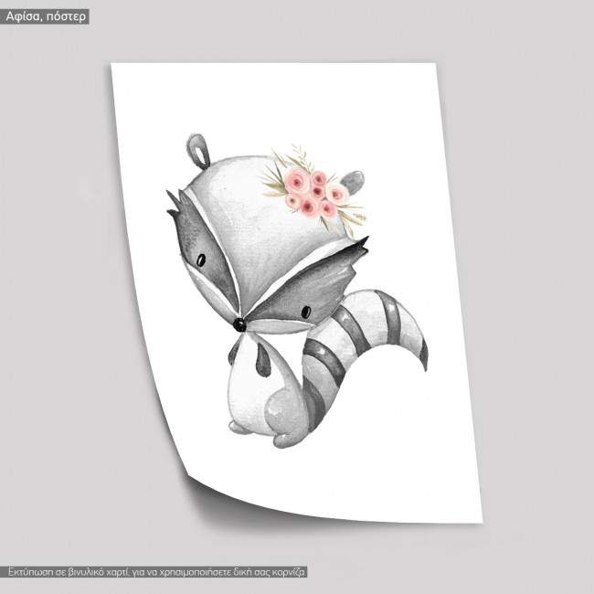 Ρακούν gray pink watercolor, αφίσα, κάδρο