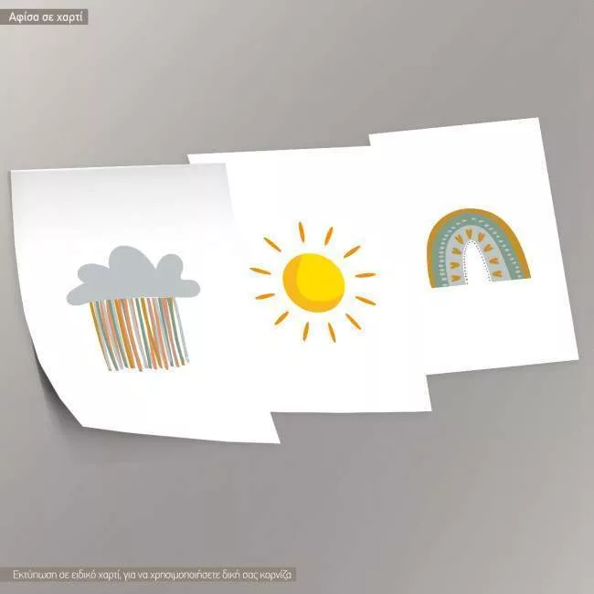 Βροχερό σύννεφο, Ήλιος, Ουράνιο τόξο Boho, αφίσα, κάδρο