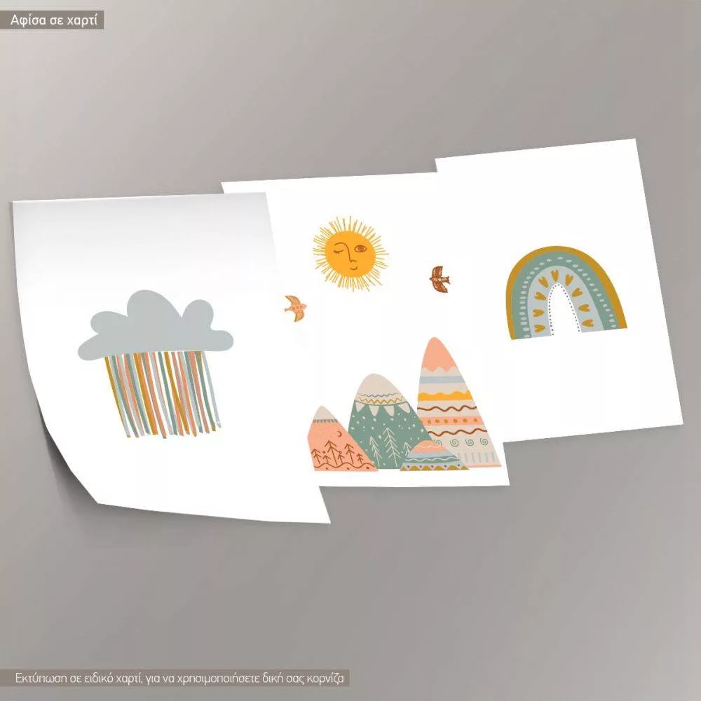 Βροχερό σύννεφο, Βουνά, Ουράνιο τόξο Boho, αφίσα, κάδρο