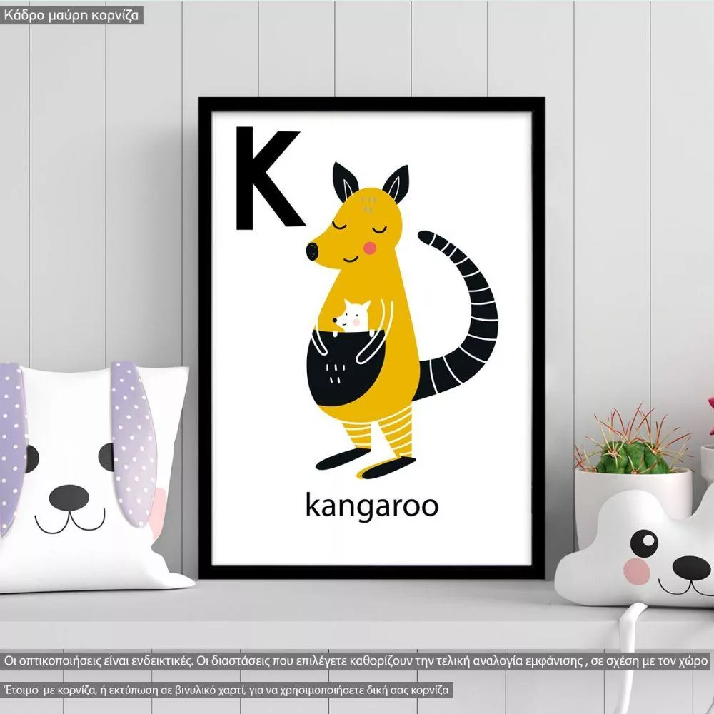 K kangaroo, Αλφάβητο Αγγλικό, αφίσα, κάδρο