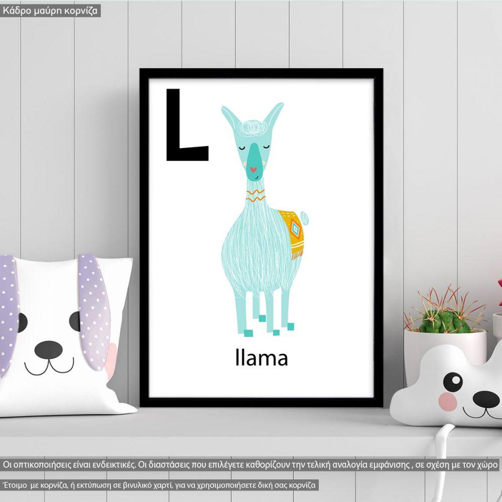 L llama, Αλφάβητο Αγγλικό, αφίσα, κάδρο