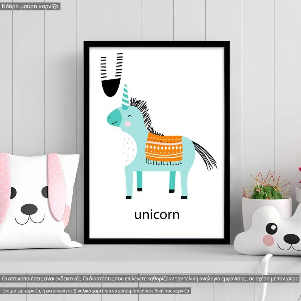U unicorn, Αλφάβητο Αγγλικό, αφίσα, κάδρο