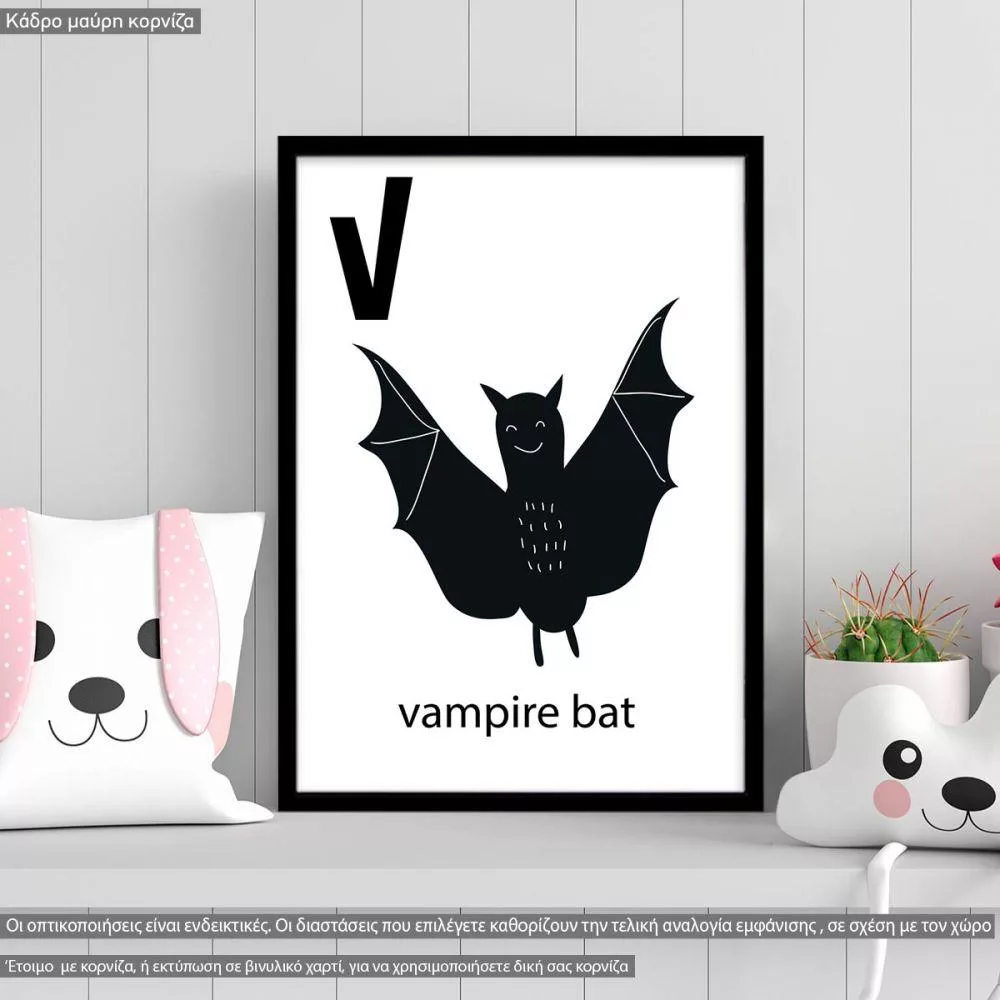 V vampire bat, Αλφάβητο Αγγλικό, αφίσα, κάδρο