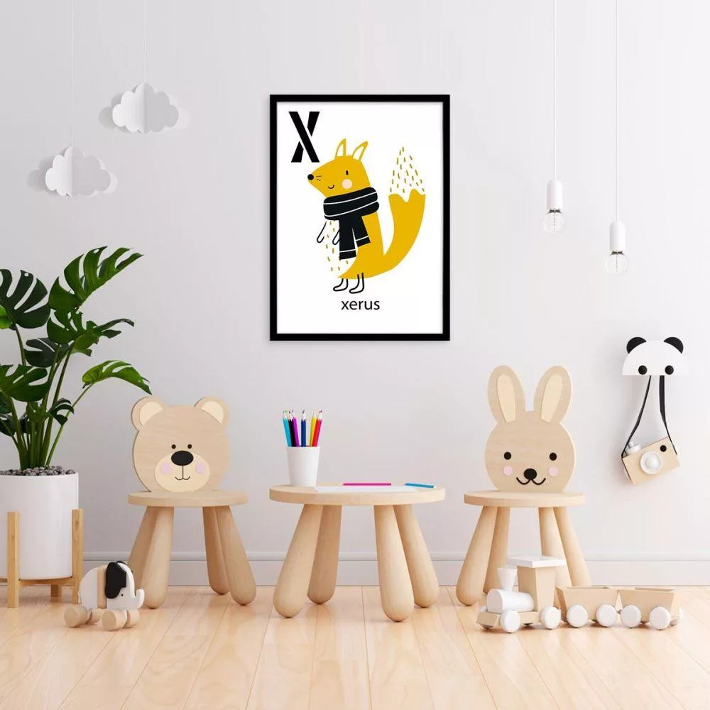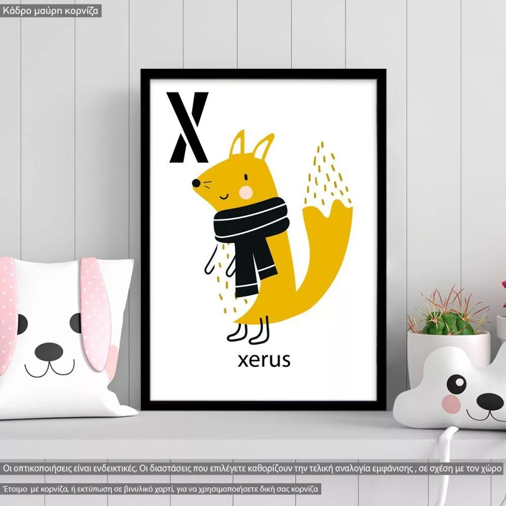 X xerus, Αλφάβητο Αγγλικό, αφίσα, κάδρο