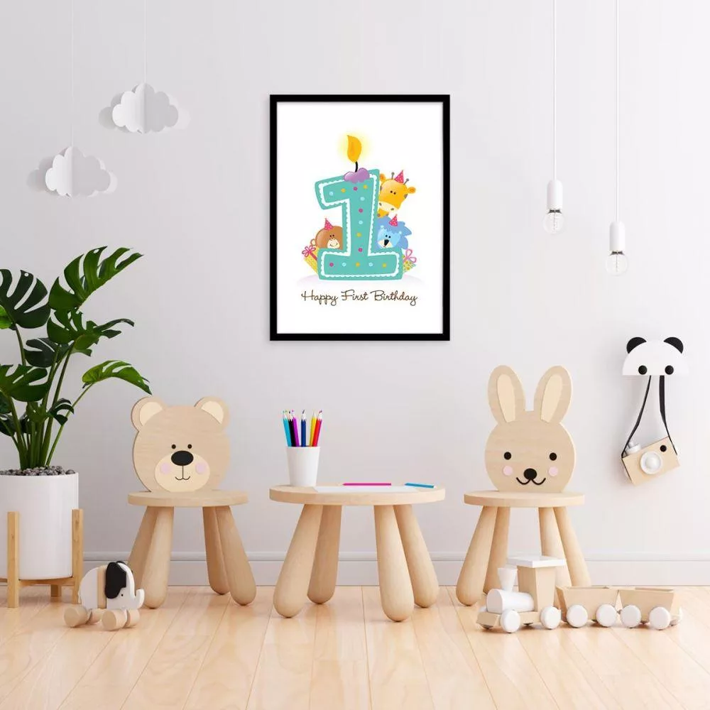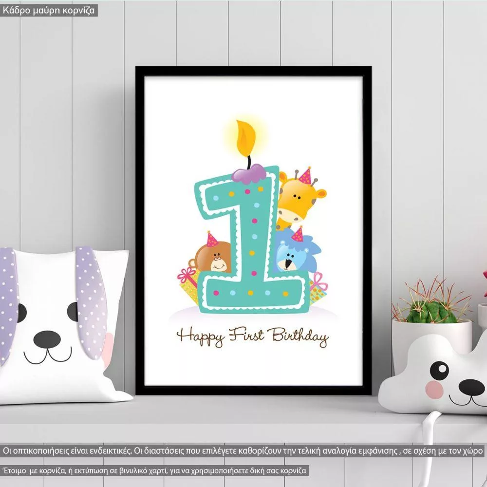 Happy First Birthday με ζωάκια, αφίσα, κάδρο