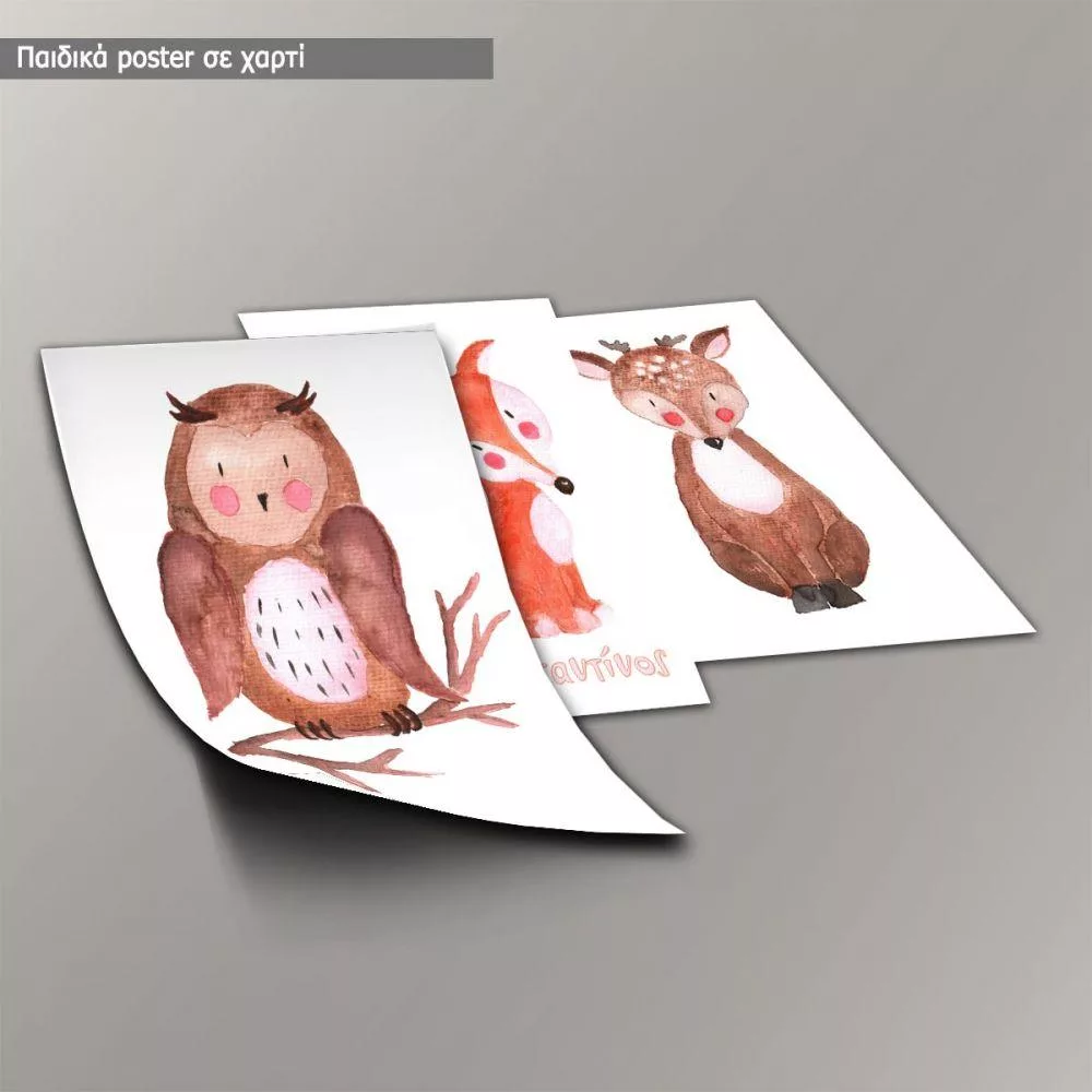 Πίνακας παιδικός σε καμβά Woodland animals, Κάστορας ζωγραφιστός