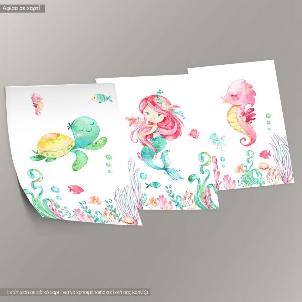 Γοργόνα ζωγραφιστή, ξύλινη φιγούρα εκτυπωμένη