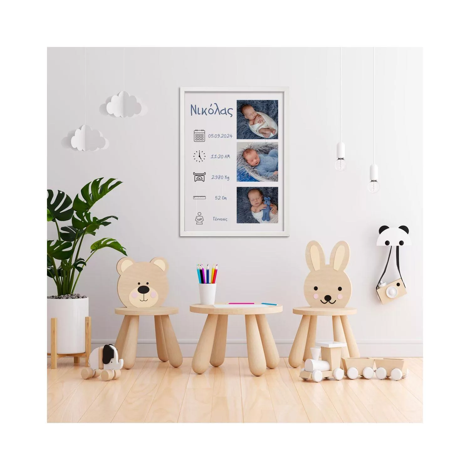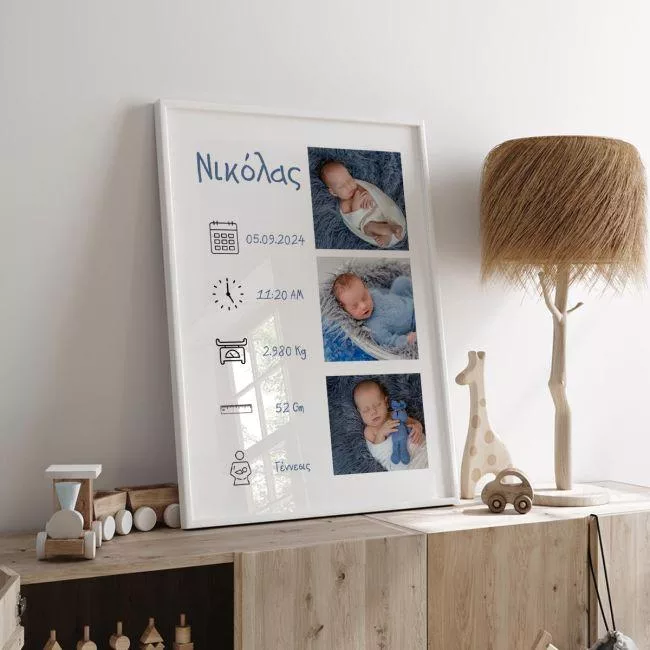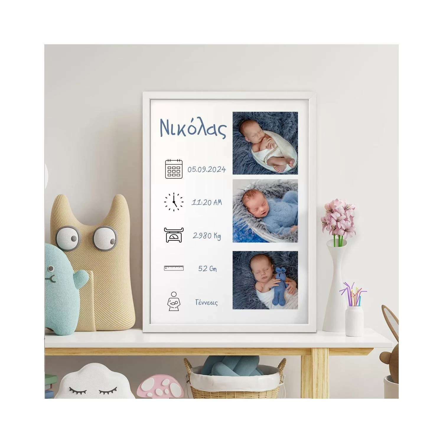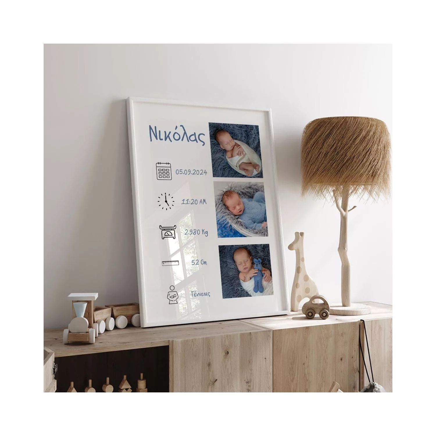 3 φωτογραφίες με στοιχεία γέννησης, blueish, αφίσα, κάδρο