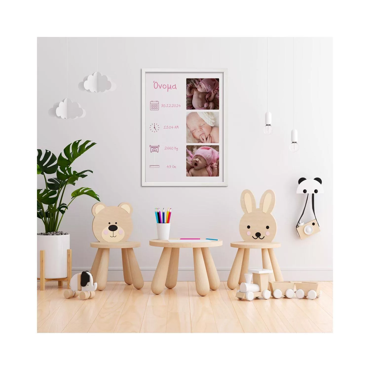 3 φωτογραφίες με στοιχεία γέννησης, pinky, αφίσα, κάδρο