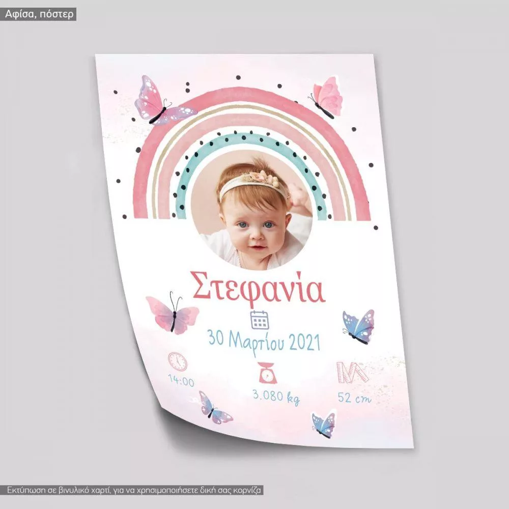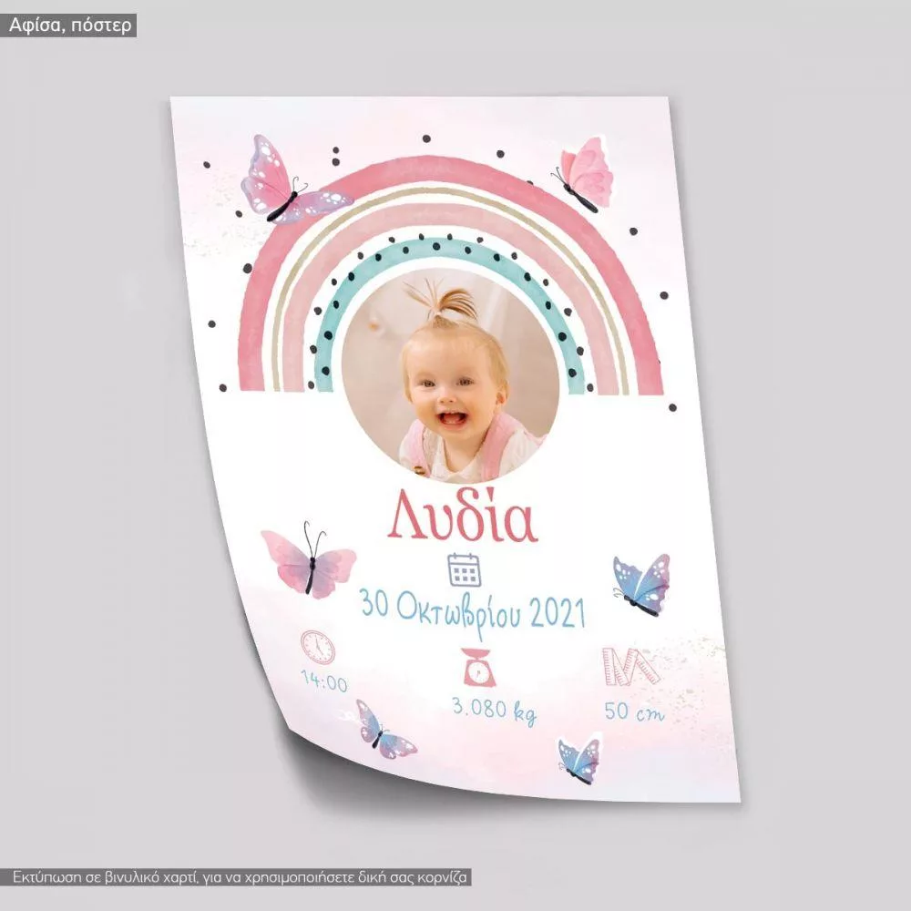 Ουράνιο τόξο και πεταλούδες με στοιχεία γέννησης και φωτογραφία, αφίσα, κάδρο