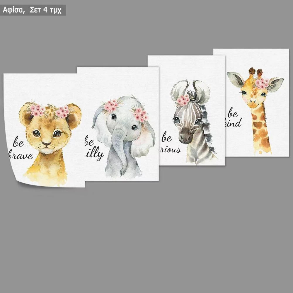 Little Africa, Τιγράκι, Ρινόκερος, Λιονταράκι, αφίσα, κάδρο, τρίπτυχο