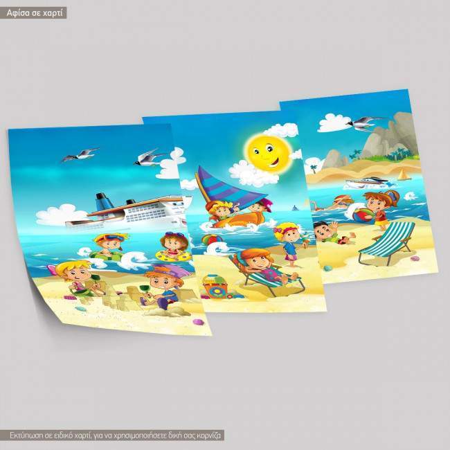 Παιχνίδι στη παραλία, αφίσα, κάδρο, τρίπτυχο