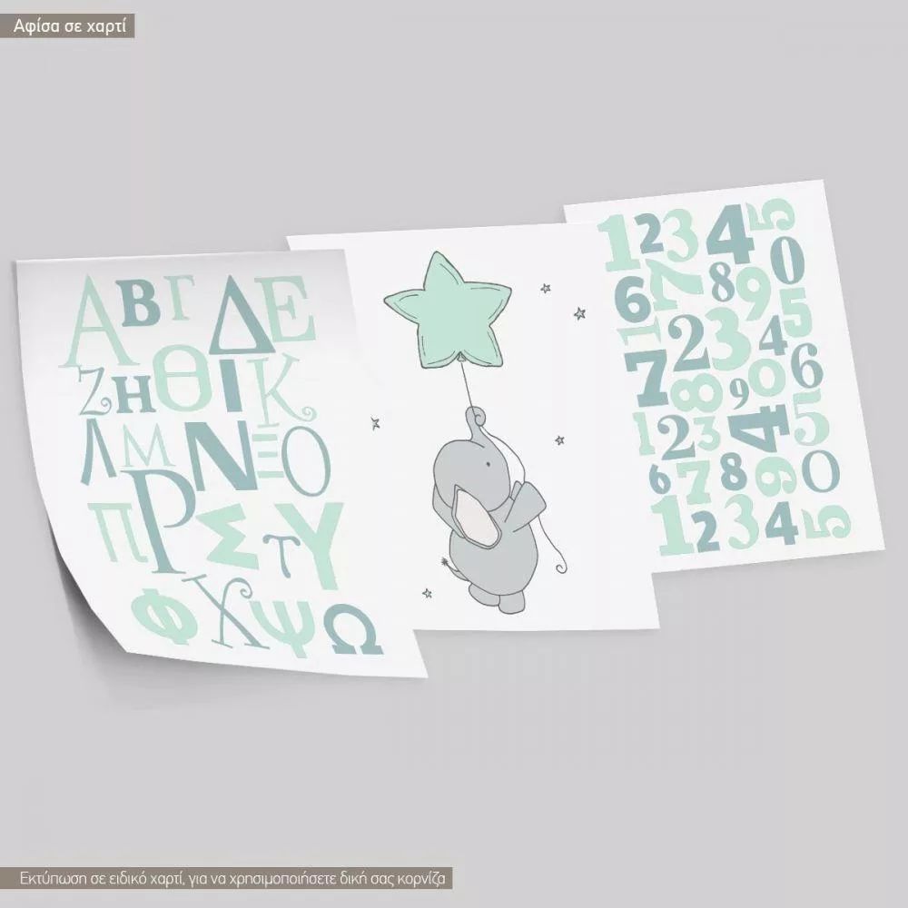 Πίνακας παιδικός σε καμβά Ελεφαντάκι στα σύννεφα, με όνομα