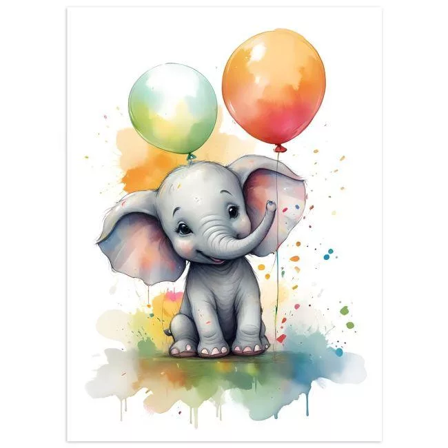 Ελέφαντας ζωγραφιά με μπαλόνια, αφίσα, κάδρο