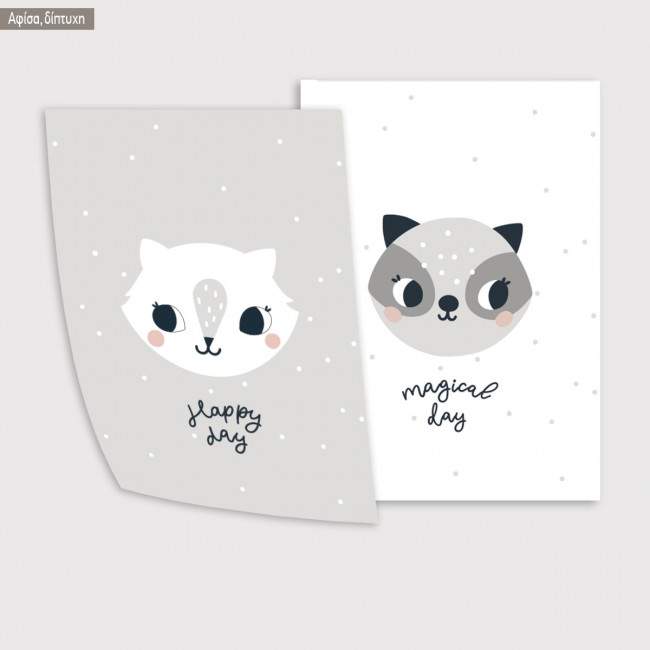 Νεογέννητο Αλεπουδάκι και Ρακούν, αφίσα, κάδρο δίπτυχο