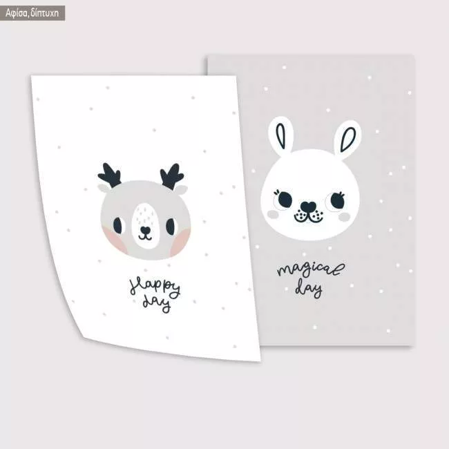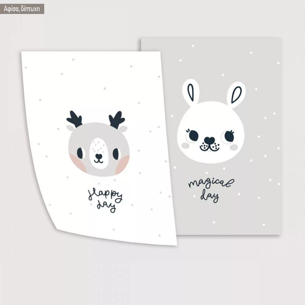 Νεογέννητο Ελαφάκι και Κουνελάκι, αφίσα, κάδρο δίπτυχο