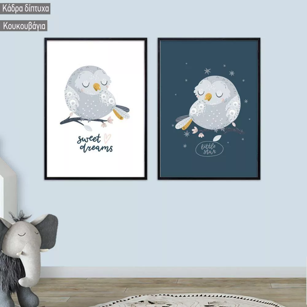 Νυσταγμένη Κουκουβάγια, αφίσα, κάδρο, δίπτυχος