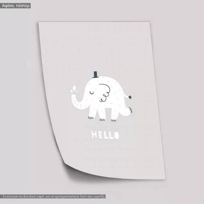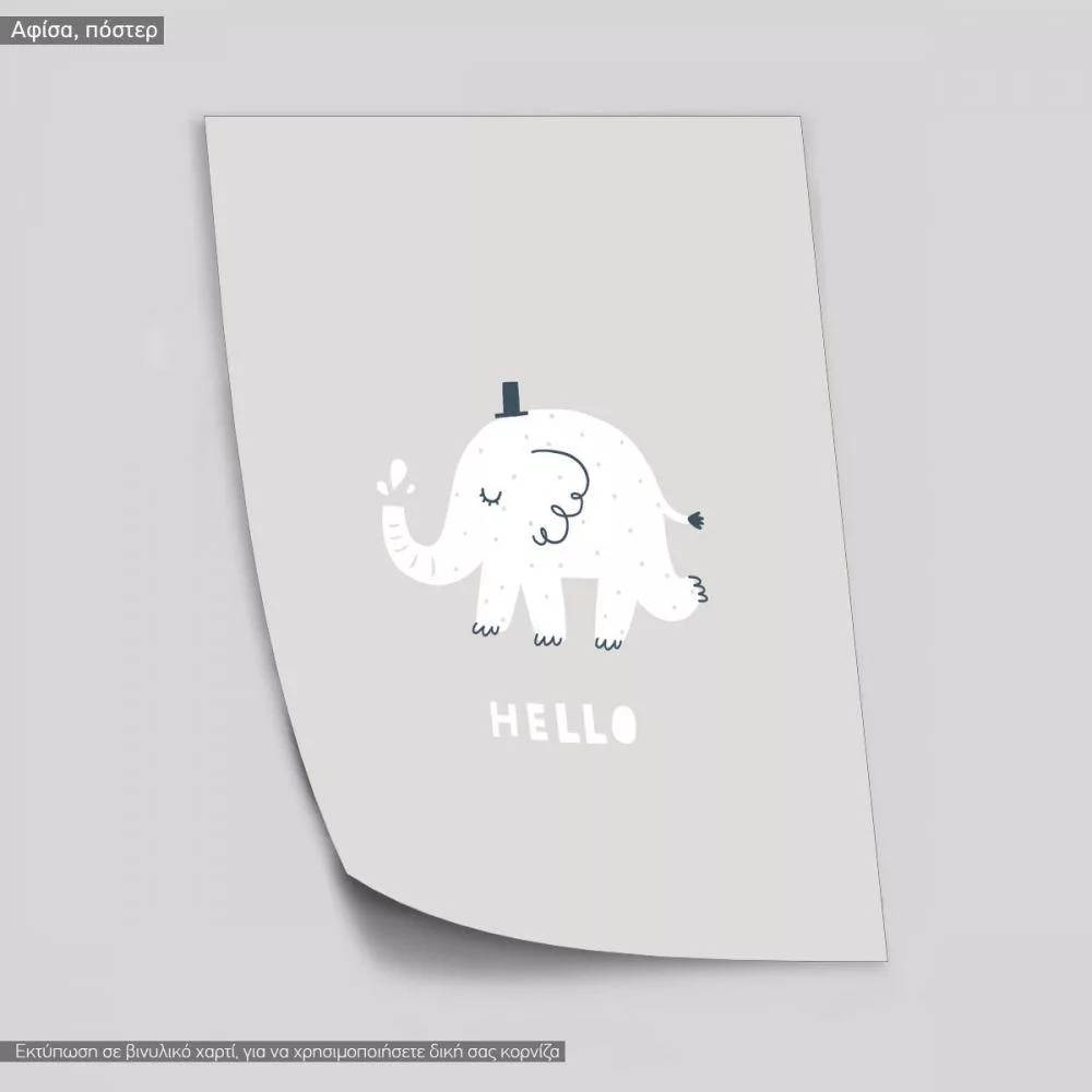 Ζωάκια με ευχές, Ελεφαντάκι, hello, αφίσα, κάδρο
