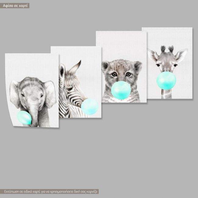 Ζωάκια ζούγκλας με φούσκα, αφίσα, κάδρο, τετράπτυχο