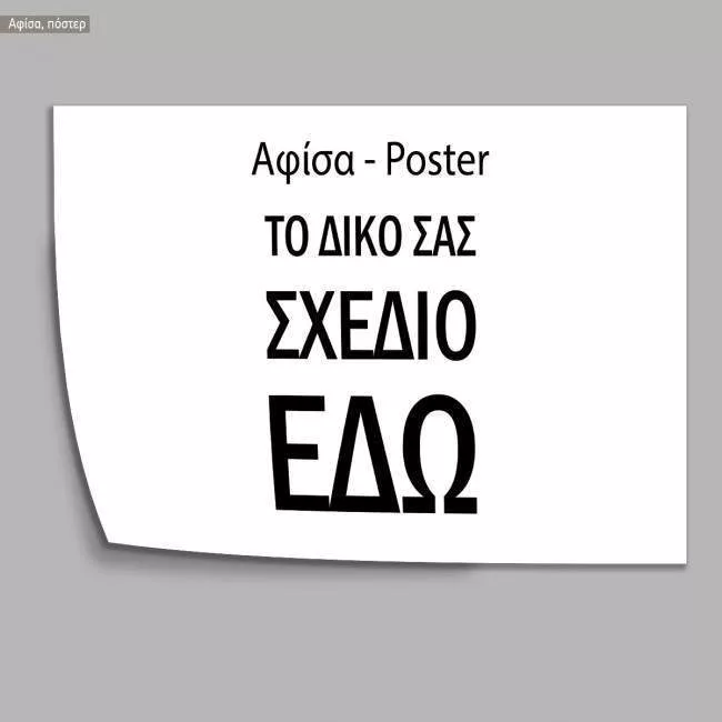 το δικό σουΠίνακα σε καμβάΠίνακας σε καμβά με δική σας φωτογραφία οριζόντιος17,91 € 19,90 €Πίνακας σε καμβά με δική σας φωτογραφία κάθετος17,91 € 19,90 €Αφίσα, πόστερΑφίσα πόστερ, κάθετη εκτύπωση δικού σας σχεδίου6,72 € 7,90 €Αφίσα πόστερ, οριζόντια εκτύπωση δικού σας σχεδίου6,72 € 7,90 €Βάπτιση & ΓάμοςΟνόματα PlexiglasΟνόματα ξύλιναΑυτοκόλληταΠασχαλινά - Μπλουζάκια