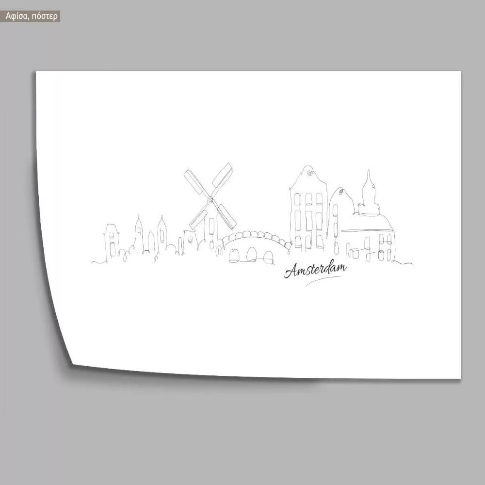 Cityscape line art Amsterdam, αφίσα, κάδρο